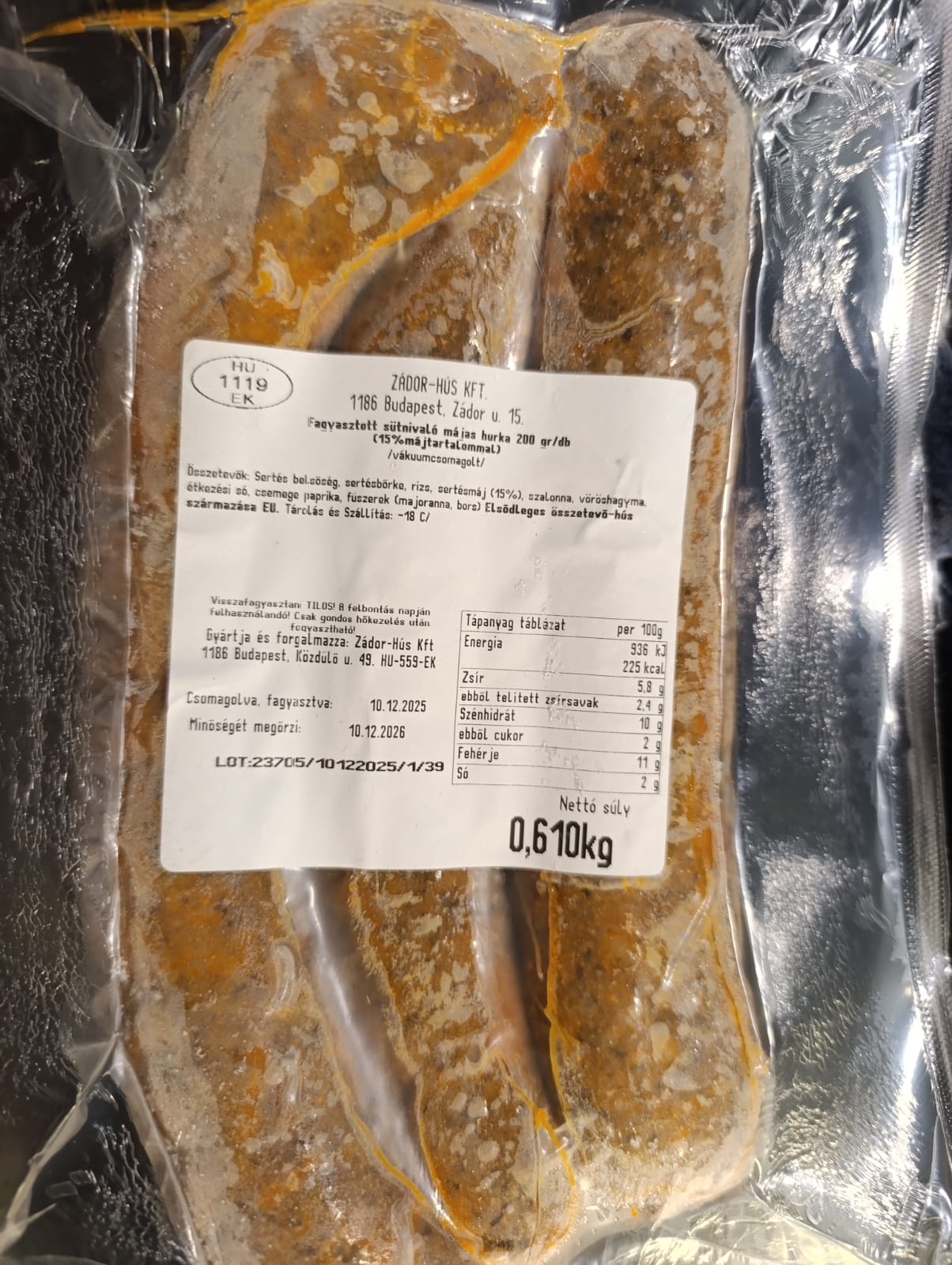 Zádor Sütnivaló májas hurka cca 600g